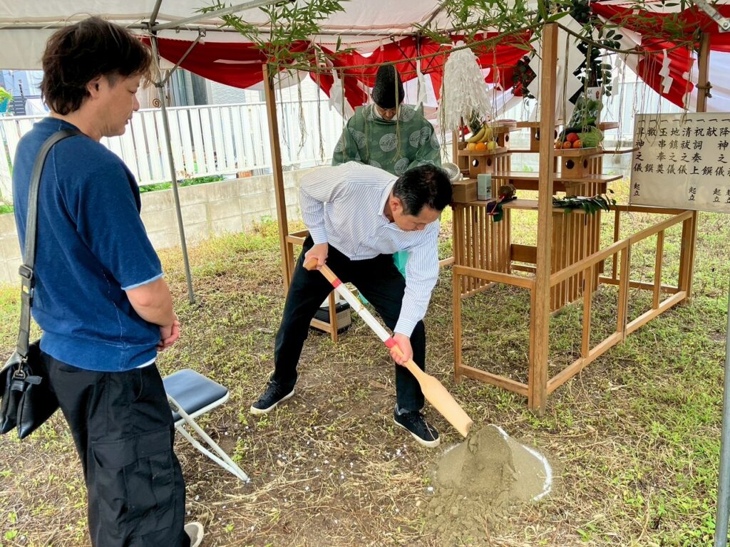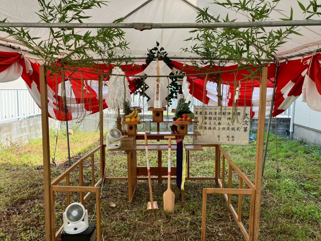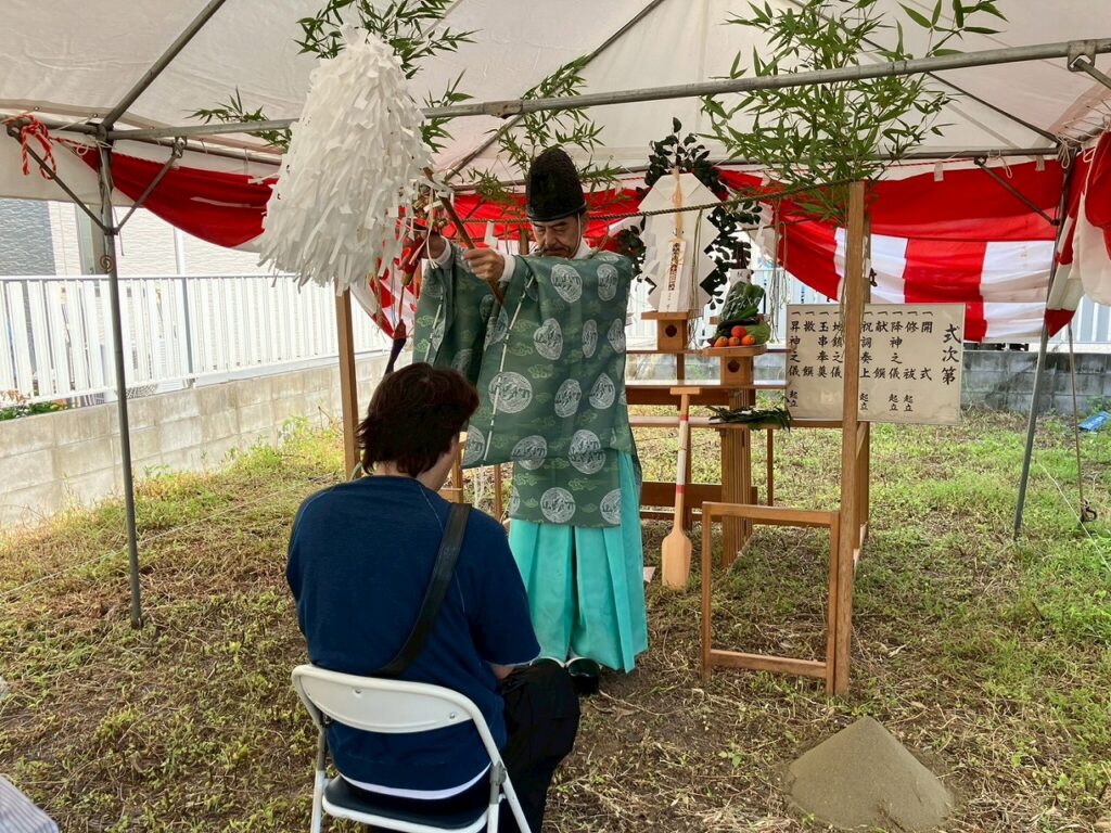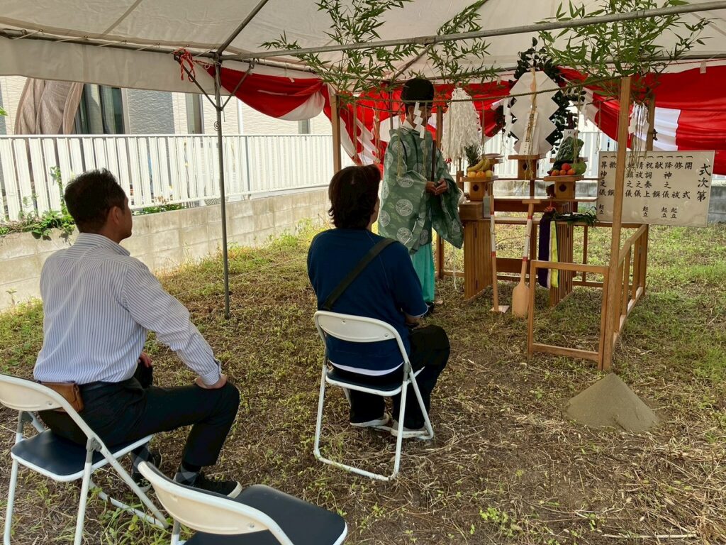 地鎮祭とは、これから建てる家の工事が安全に進むよう、土地の神様にお祈りをする日本の伝統的な儀式です。